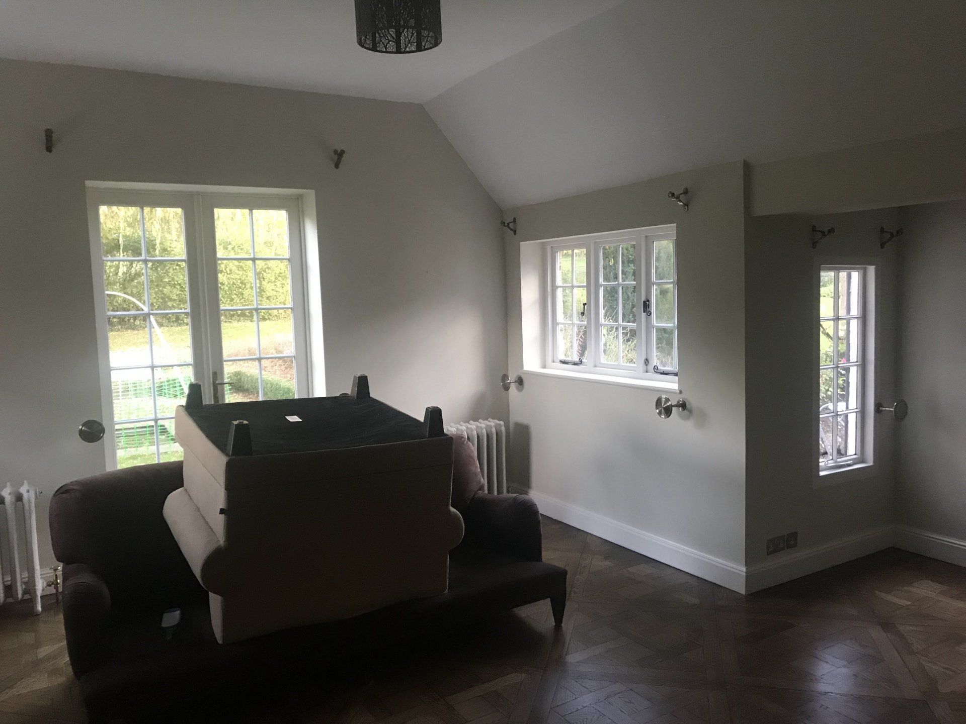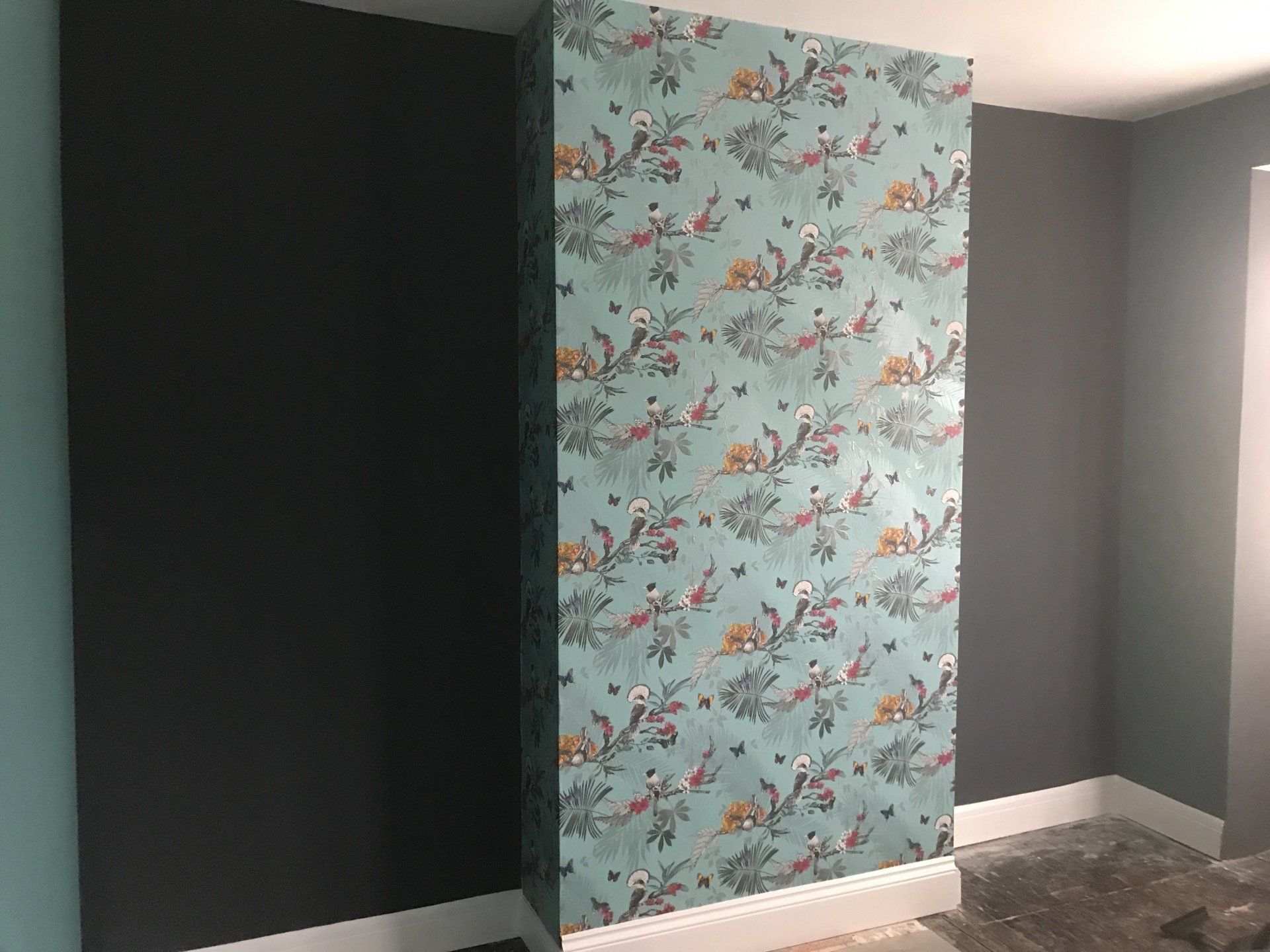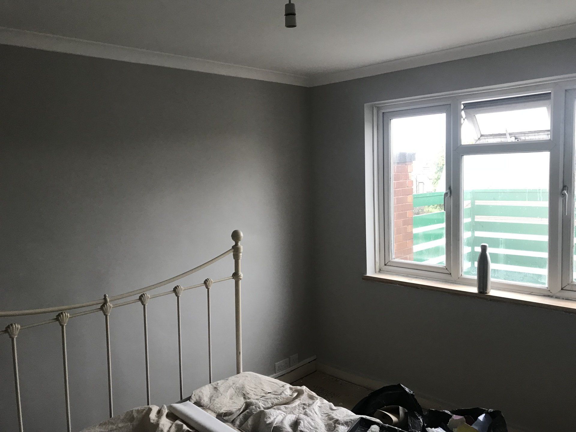 Walls were treated, paper stripped, window sill stripped and all re-painted.