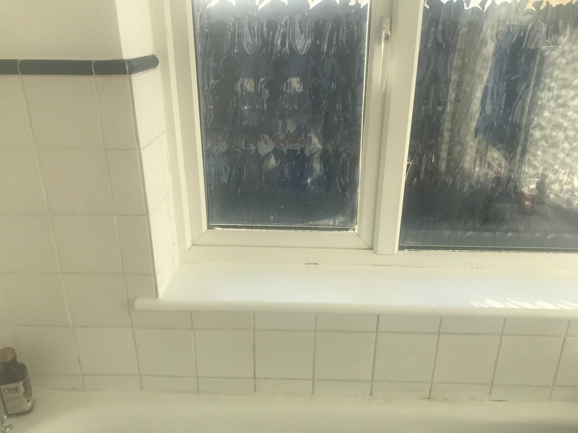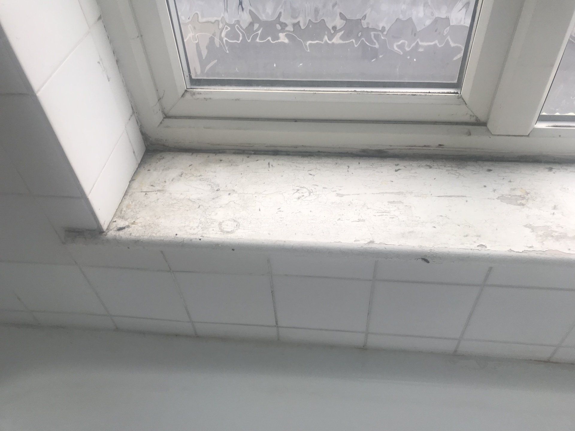 Window sill sanded back, decayed silicone removed, re-painted and silicone applied between window frame and sill.